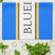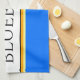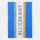 Bright Blue Orange White Stripes "BLUEBERRY" Text Tea Towel