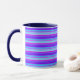 Creative bright blue purple violet striped mug. Blue purple violet horizontal stripes mug. Bright blue striped mug colour design. Artistic original stripes mugs. Vibrant blue palette striped mug. Geometrical lines pattern design.