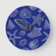 Bright Blue Shell Pattern Round Clock