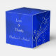 This is a stylish, rich looking wedding favour box, with your special custom message and your first names in silver on the back. Pretty silver swirls finish off each side of the box, and everything is placed on a bright blue gradient background that almost glows. This favour box matches the Elegant Blue Silver Monogram Wedding Invitations in our store.