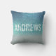 Bright Blue Teal Sparkly Glitter Ombre Monogram Cushion