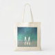 Bright Blue Teal Sparkly Glitter Ombre Monogram Tote Bag