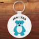 Create a fun small gift with a personalised touch or use this key chain as a party favour for teddy bear themed parties. The keychain features a cute illustration of a furry teddy bear in bright turquoise blue and is ready to be personalised with a name or other text in bold black lettering.