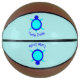 This awesome basketball features a bright blue turtle with big black eyes and a two-tone blue shell. He has little blue feet and a cute tail. There is text underneath the turtle that says turtle dude. This would make a fun gift for a male of any age.
