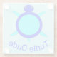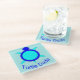 This awesome glass coaster features a bright blue turtle with big black eyes and a two-tone blue shell. He has little blue feet and a cute tail. There is text underneath the turtle that says turtle dude. This would make a fun gift for a male of any age.