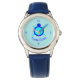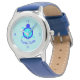 This awesome watch features a bright blue turtle with big black eyes and a two-tone blue shell. He has little blue feet and a cute tail. There is text underneath the turtle that says turtle dude. This would make a fun gift for a male of any age.