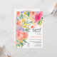 Bright bold boho garden floral graduation Invitation, featuring hand painted peach roses, red flowers watercolor, green eucalyptus and greenery and other cute pretty garden flowers with a modern script font brush. A burst of bold colours and pretty blooms!