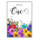 Bright and bold floral table numbers that can easily be customised. Design features calligraphy script lettering, hand painted watercolor flowers in vibrant hues of red, purple, blue, pink and yellow with green foliage.