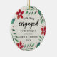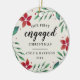 Celebrate your first Christmas as an engaged couple with this charming and festive ornament. Design features "first engaged Christmas" and the year in black lettering, surrounded by red poinsettia flowers and green holiday foliage on a soft ivory background. Add a photo to the back with matching holiday botanical embellishments.