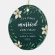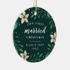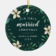 Celebrate your first Christmas as a married couple with this charming and festive ornament. Design features "first married Christmas" and the year in white lettering, surrounded by ivory poinsettia flowers and green holiday foliage. Add a photo to the back with matching holiday botanical embellishments.