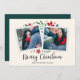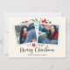 Elegant and festive holiday photo card frames two of your favourite square photos with a subtle deckled edge border and red and green holiday foliage peeking out at the corners, on a soft ivory background. "Merry Christmas" appears along the bottom in black calligraphy script, with your names and the year beneath.