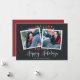Elegant and festive holiday photo card frames two of your favourite square photos with a subtle deckled edge border and red and green holiday foliage peeking out at the corners. "Happy Holidays" appears along the bottom in white calligraphy script, with your names and the year beneath.