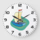 Bright Cartoon Boat with Sail Fun Nautical Large Clock