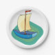 Bright Cartoon Boat with Sail Fun Nautical Paper Plate