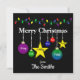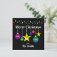 This is a bright, colorful Christmas card with ornaments, which are customizable, on a black background. You can put your family's names on each ornament to give it your personal touch.