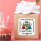 A charming square sticker adorns a beautifully wrapped gift, celebrating the holiday spirit.