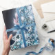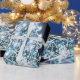 Bright Christmas Tree, White snowflakes, Blue Wave Wrapping Paper