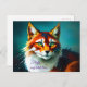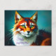 bright colour fantasy redhead white cat animal postcard