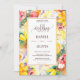 Bright Colour Retro Floral Golden Modern Wedding Invitation