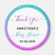 Bright, colourful "thank you" magnet for a baby shower with a oink/ blue/ turquoise/ aqua/ lilac/ purple glitter sparkles ombre border. Personalise by adding your own text, name and baby shower date. You can even change the text colour and font style using the customise option.