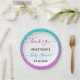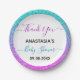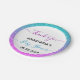 Bright, colourful "thank you" paper plate for a baby shower with a oink/ blue/ turquoise/ aqua/ lilac/ purple glitter sparkles ombre border. Personalise by adding your own text, name and baby shower date. You can even change the text colour and font style using the customise option.