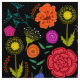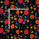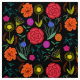Bright Colourful Flowers on Black Fabric