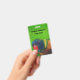 This name or identification badge has the head and face of a bright colourful macaw Parrot whose feathers are blue, green, yellow and orange on a green backgroun. Back is same green background. Customise your name and information with the templates.