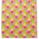 Honeycomb pattern shower curtain in bright colours including green, orange, lavender, hot pink, and yellow.