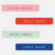 Modern and simple name labels in matching colour schemes. Perfect to label daycare, school or work supplies.