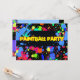 Fun invitation to your paintball party with colourful paint splashes in shades of blue, green, orange, yellow and red. You can change the text to read anything you like. Also change text font and colour to your liking.