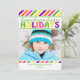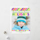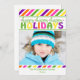 Modern and bright, this pink, green, purple, orange and yellow striped Christmas holiday photo flat card will delight your friends and family. Easy to create your one of a kind custom holiday card with our photo and text template. Simply add your own picture and customise the text. For best results use a large or high quality photo. Not sold in stores, our designs are exclusive! Fresh and fun design stands out among the crowd. 5 x 7 inches, comes complete with envelope for each card BRIGHT Colourful Stripes Christmas Flat Card Non-denominational