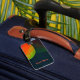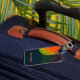 Spot your luggage with this bright florescent volleyball sports design in orange and green reflected on a dark black background. This identification tag is fun and functional with its vibrant colourful sporty vibe. This image is original sports photography by JLW_PHOTOGRAPHY.
