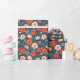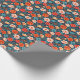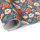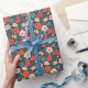 Coral red, blush pink, and sky blue flowers on a midnight blue background makes a bight and beautiful all-occasion gift wrap.