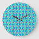 A chic Round Wall Clock, with a traditional Islamic pattern in turquoise blue, light green, purple and white. Part of the Posh & Painterly "Islamic" collection
