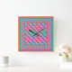 A chic Square Wall Clock, with a traditional Islamic pattern in bright pink, orange, turquoise blue and light green, outlined in white; from the Posh & Painterly 'Islamic' collection.