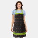 Add some class to your staff uniform with this lovely design. Bright shades of lime green, hot pink, orange and yellow mix in this paw print pattern on a black background. Personalise with your name at the top and your company name across the bottom. Suited to any animal professional but particularly to pet groomers, pet salons, pet stores, veterinary techs, dog trainers, doggy day spas, day care, animal shelter, pet store and pet sitters. Also a good idea for a dog or cat lover; you can put the names of their pets instead of the company name. Straps are the same bright green as the boxes. Matching products available.
