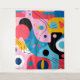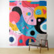 Bright colours with different whimsical shapes in different colours, modern geometric composition.