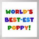 Bright colours text World's Best-est Poppy T-shirts, mugs, hoodies, cards, tote bags, magnets, keepsakes, and other world's best poppy gear.