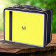 A contemporary metal lunch box, with bright yellow and black minimalist design. Personalise with your initial, which will form a stylish monogram. The lunch box displays the same design on both the front and back, and makes a striking accessory for work, college or travel.