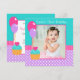 Bright Cupcake Polka Dot Girl 1st Birthday Photo Invitation