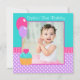 Celebrate your little girl's first birthday with this cute cupcake 1st birthday photo invitation. Featuring balloons and a cupcake on a polka dots background. Shown in pink, teal and purple. To resize and position your photo, click on the "CUSTOMIZE IT" button. Graphics by © Dreamlike Magic Designs