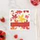 The natural Bright Fall Leaves Wedding Paper Napkins can be personalised with the names of the bride and groom and date for use at your September, October or November autumn bridal shower or marriage reception cocktail hour. These custom autumnal disposable napkins feature red, yellow and orange fall leaves with a white background.
