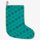 A trendy festive vibrant blue and cyan Christmas gifts with blue bows on turquoise background pattern Christmas stockings.