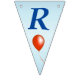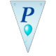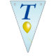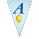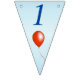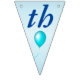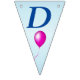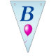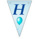 This flag shaped bunting Happy Birthday banner is light blue with dark blue letters with bright festive balloons in multiple colours of red, yellow, blue, pink and green. Customise the birthday year with the templates.