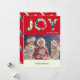 Enjoy sending festive greetings to your family and friends with this modern and bright Christmas card. At the top are the words 'Joy to the world', with 'Joy' infilled with a botanical green leaf and red poinsettia flower design. Upload your chosen photograph to feature in the centre of the card, and personalise with your name or other text underneath.
