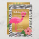 BRIGHT FLAMINGO HIBISCUS BLACK ZEBRA PATTERNED INVITATION