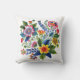 Pretty bright floral bouquet design that is a faux yarn embroidery design on this sofa couch or bedroom throw pillow. Available in two square sizes.