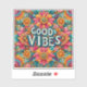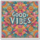 A lively arrangement of intricate floral patterns bursts with colour, emphasizing an uplifting Good Vibes phrase at the centre. The bright oranges, pinks, and blues create an energetic atmosphere, perfect for enhancing any space with positivity.