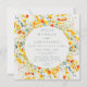 This design features bright watercolor florals in vibrant shades of yellow, orange, green, and teal. Perfect for spring and summer weddings.