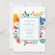 Introducing our modern "Bright Floral Wedding Invitation". This vibrant invitation features stunning red, pink, yellow, and blue floral imagery on the front, creating a lively and joyful aesthetic. The blue background on the back of the invitation includes a convenient photo placeholder and a customisable QR code template, allowing you to add personal touches and share essential details with your guests effortlessly and under budget. Perfect for couples who love vibrant, bold colours and simple designs.
